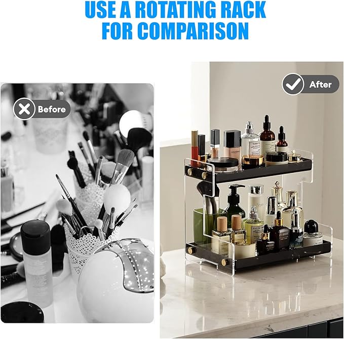 - 2-TIER BATHROOM COUNTERTOP ORGANIZER: Keep your daily items at your fingertips, Its 2-tier display shelves offer neat organization for your toiletries, cosmetics, makeup brush etc.