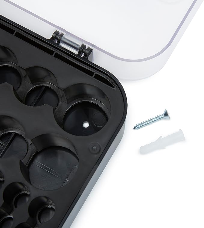 Amazon Basics Battery Organizer with Tester, Wall-Mounted Design, Handle Holds 110 Batteries,9.37 x 11.69 x 2.91 inches Clear/Black
