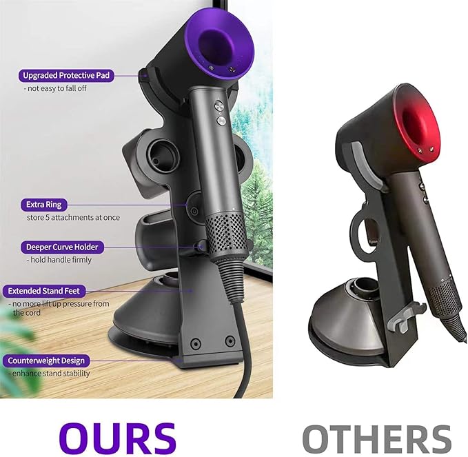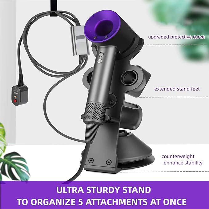 - 【Holder for Dyson Hair Dryer】Works as Dyson hair dryer stand, diffuser stand and nozzle holder, steadily hold your Dyson hair dryer. Specially designed for Dyson hair dryer. Just say goodbye to messy dressing tables, troublesome drilling and complicated installation