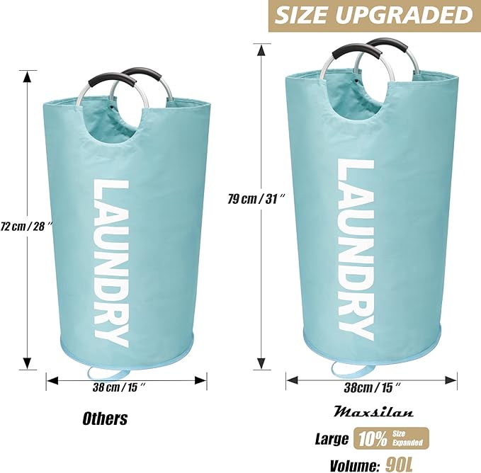 - Lots of Space - 15 x 15 x 31 inches / 38 x 38 x 79cm (includes handle) with 90L large capacity, it can hold 1.5 loads of clothes
