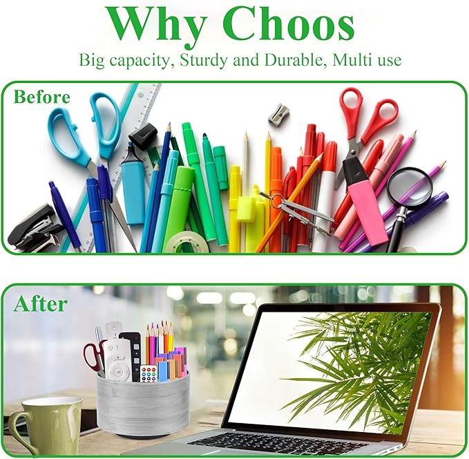 - ✎360° Revolving Design: You can freely rotate the pen holder steadily left and right,unique spinning base design allows easy access to items from any directions.The non-slip pads on the bottom keep it stay in place when rotating.