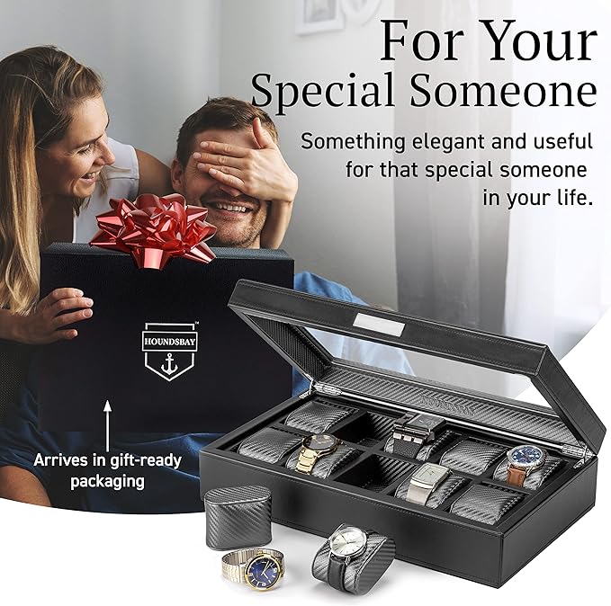 - SATISFACTION GUARANTEE - Buy this watch storage box with confidence. HOUNDSBAY offers a LIFETIME Warranty on every watch storage case, and excellent, professional customer service. We believe this is the best wrist watch display case on the market.