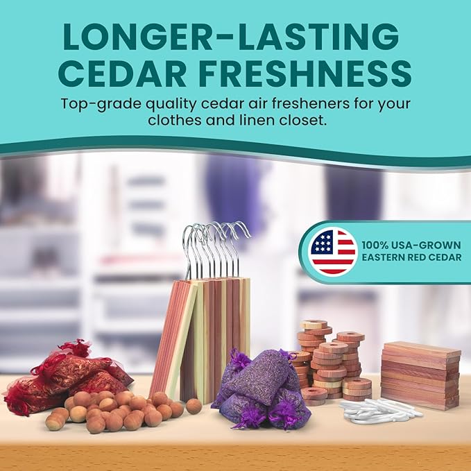 - Protect your clothes from damage with our premium quality cedar blocks for clothes storage, made from 100% aromatic U.S. eastern red cedar - the natural and effective protection for closets and drawers.