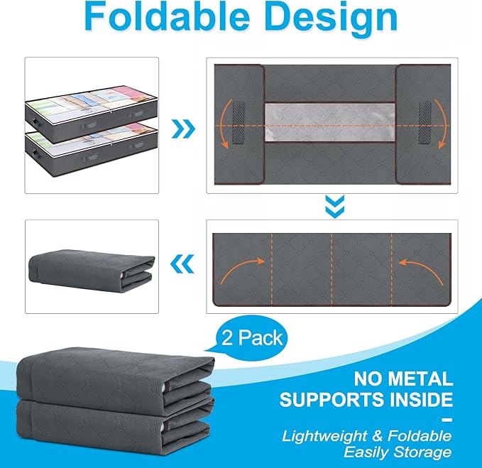 - Premium Material : The underbed storage containers are made from high-quality, odorless, three-ply composite non-woven thick fabric, sturdy and breathable, keep clothing fresh from long-term storage. No cardboard NOR metal supports insert, arrive to you collapsed and packaged in a clear storage bag.
