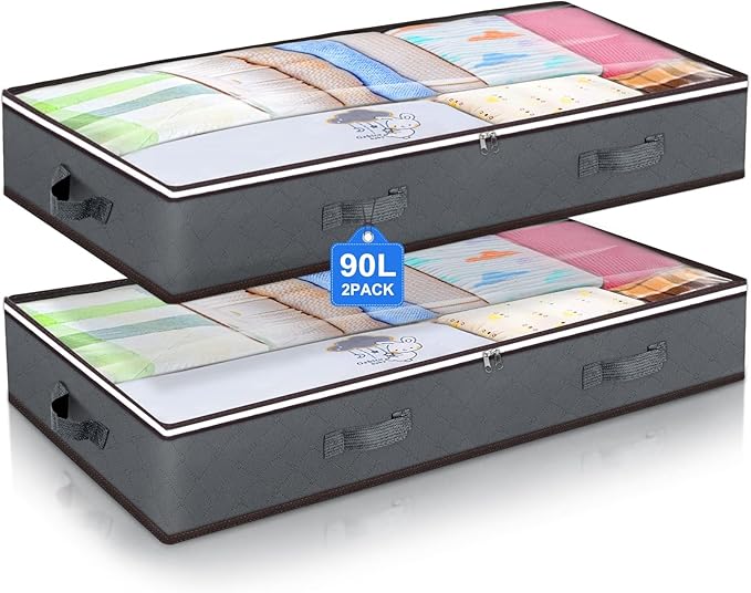 90L Under Bed Storage Containers, Underbed Toy Organizers and Clothing Storage Bags, Closet Storage Bins with Clear Lids for Bed Sheets Blanket Clothes Comforter Bedding Bedroom Dorm, 2 Pack