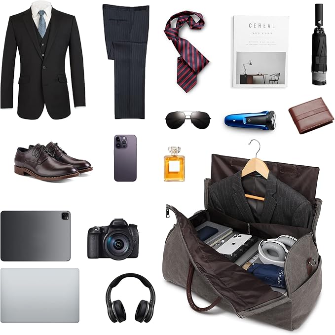 - ✅3 in 1 CONVERTIBLE GARMENT BAG: This garment travel bag combines the feature of a garment bag and a travel duffle bag.The Convertible Garment Bag can be used as a garment hanging bag,garment backpack and travel duffel bag which is not only a overnight weekender bag, but also a great hanging clothes bag.