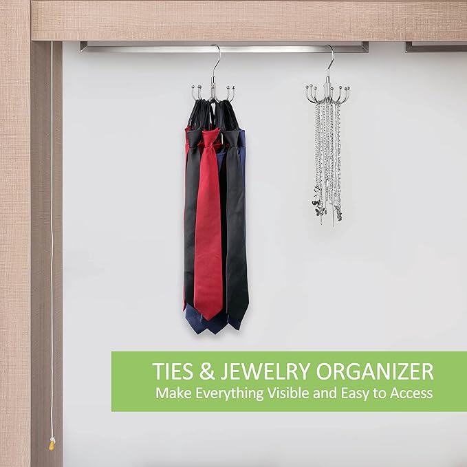 Belt Hanger, Rotatable Belt Organizer for Closet, Accessories Rack, Space Saving Hanging Holder Storage Hook for Belt, Tie, Scarf, Purse, Bra, Tank Top, Silver