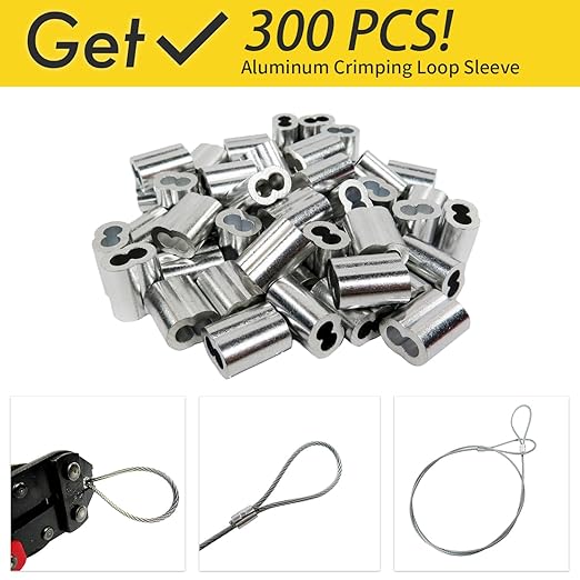 - Includes 300 aluminum sleeves to easily reinforce cut ends and prevent fraying. Can be crimped on with pliers.