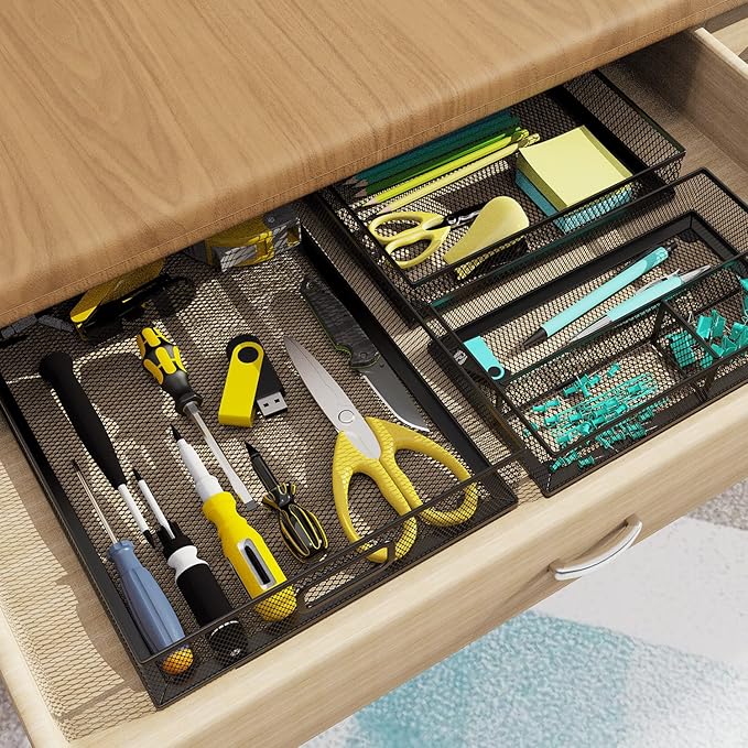 - Versatile Use: This metal drawer organizer is not limited to office use. It can also be used in the bedroom or bathroom to storage small items like tools, makeup, jewelry, silverware and more.