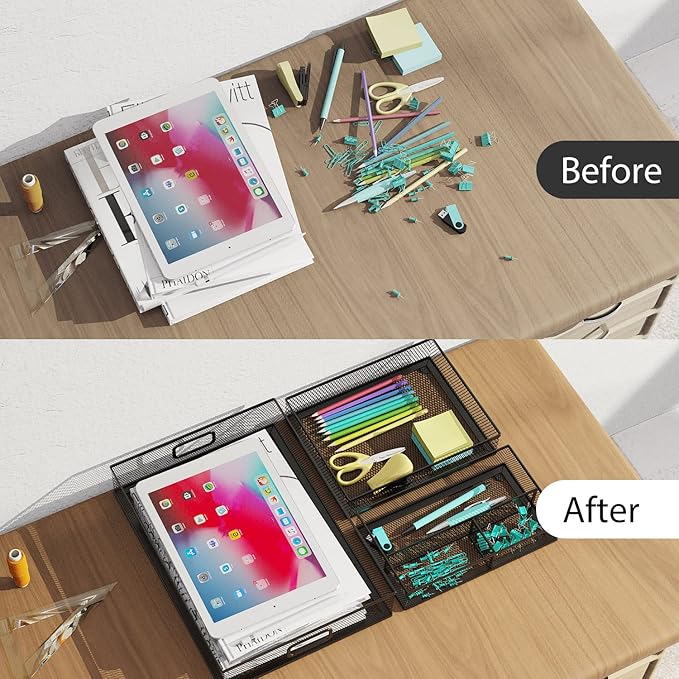 - Metal Construction: Made from high-quality metal, all the 3 desk drawer organizers are built to last. Comes with 4 cushion sponge pads on each bottom to keep it antiskid and stable.