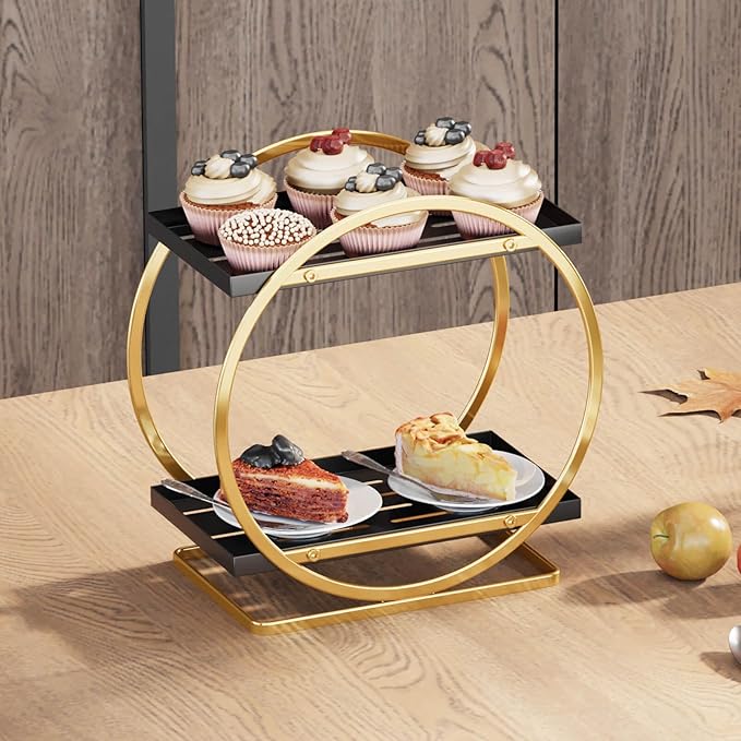 - 2-TIERED BATHROOM ORGANIZERS AND STORAGE: Black Gold perfume stand organizer is a stylish option for displaying and organizing your frequently used makeup items. It adds a touch of elegance to your vanity while keeping things within easy reach