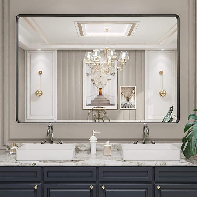 LOAAO 60X40 Inch Black Metal Framed Bathroom Mirror for Wall, Matte Black Bathroom Vanity Mirror Farmhouse, Large Rounded Rectangle Mirror, Anti-Rust, Tempered Glass, Hangs Horizontally or Vertically