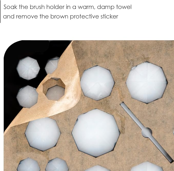- Assembly Instructions Description : Panel of cosmetic brush drying rack is adjustable to be tilted to different angles for easy insertion of wet and dry brushes into slots. - Bristles upwards when using. Bristles downwards after washing to avoid water returning back. Keep balance-try to incline it when only a few brushes. - ABS stand features a unique connection between panel and base to provide added stability, ensuring brushes dry evenly and securely. - There is a brown protective sticker on the brush tower. Please remove it before using it! It comes off easily when the brown cardboard is wet. Just put the brush holder under warm running water and rub it a bit and then start at the corner to peel it off. Panel of cosmetic brush drying rack is adjustable to be tilted to different angles for easy insertion of wet and dry brushes into slots. - Bristles upwards when using. Bristle… See more