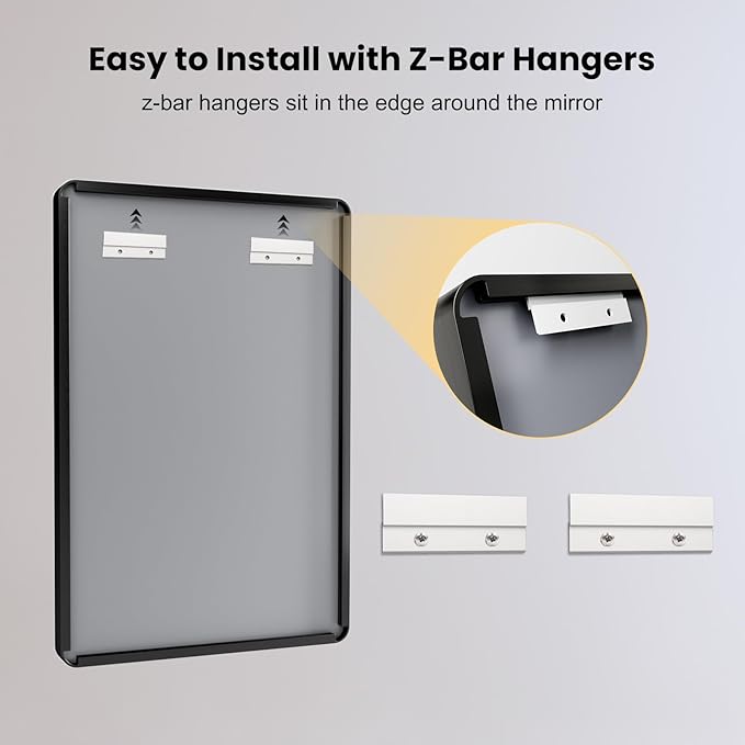 - 【Secure & Easy Hanging Option】: The sturdy wall mirror includes two Z-bar brackets; The brackets are sturdy enough to support the weight of the mirror and ensure the mirror stay securely and sturdily against the wall; Very easy to install