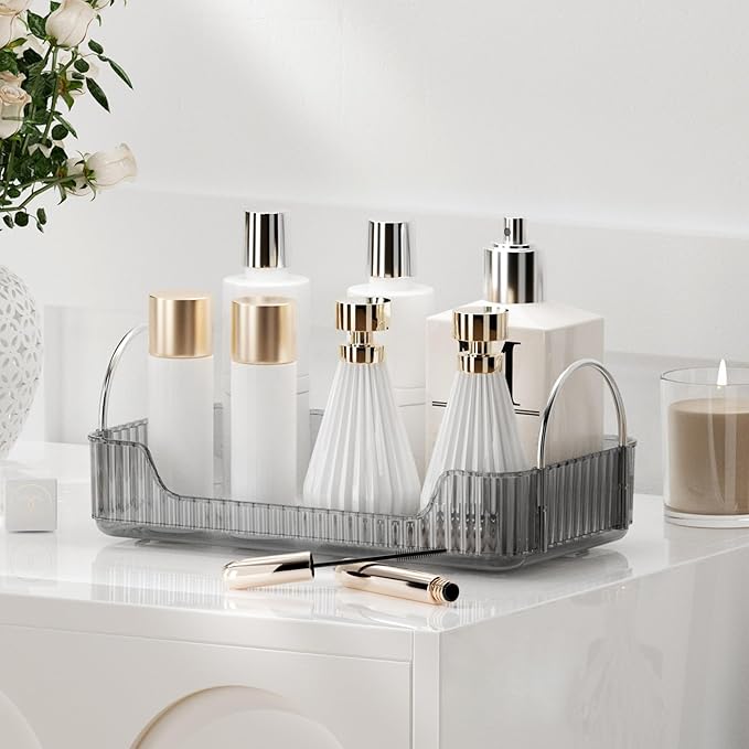 YCIA&DONE Bathroom Organizer Countertop, Makeup Storage, Skincare Cosmetic Tray Shelf, Perfume Holder Rack for Vanity Counter, Large Capacity, Easy to Install, Clean, 1 Tier, Smoky Gray