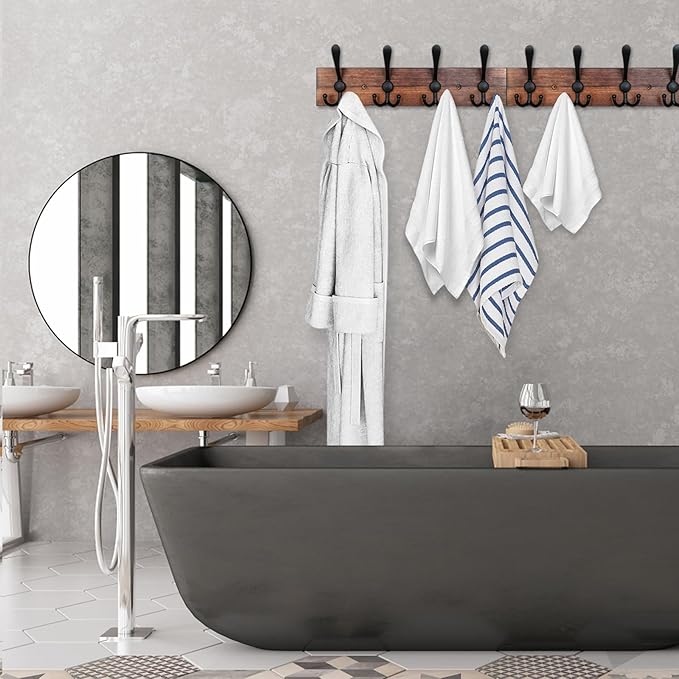 - Material - Made of rustic wood and aluminium alloy, each sturdy metal hooks can hold up to 25 lbs of weight