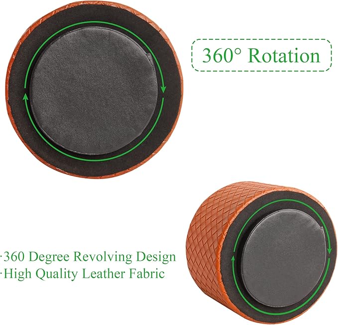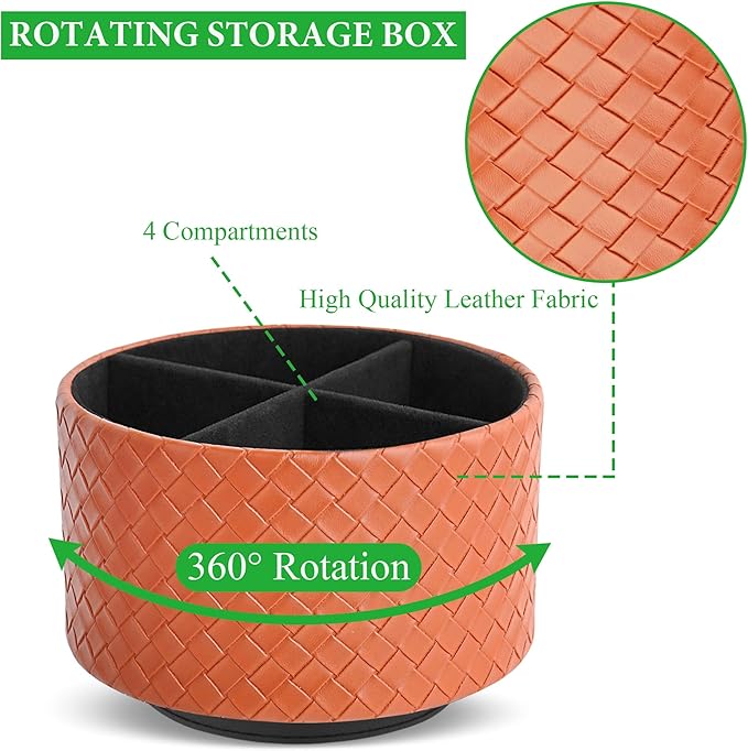 Hennaja Round Leather Art Supply Organizer,Remote Control Holder,360 Degree Spinning,Multi-Functional Pencil Holder,4 Compartments Desktop Stationary Organizer(1-Weave Brown)
