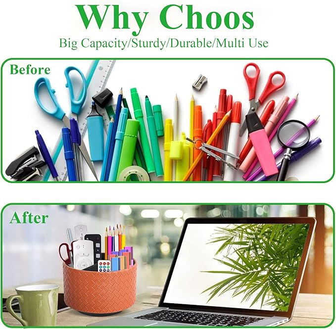 - ✎360° Revolving Design: You can freely rotate the pen holder steadily left and right,unique spinning base design allows easy access to items from any directions.The non-slip pads on the bottom keep it stay in place when rotating.