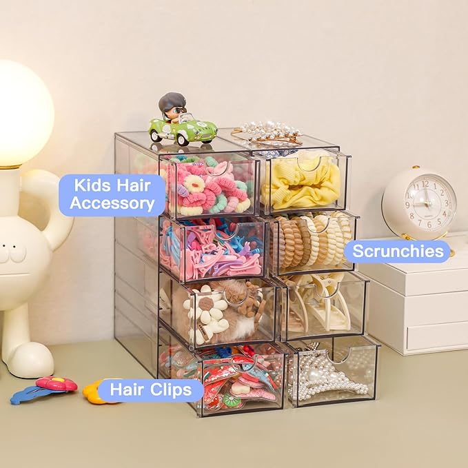 - 【4-DRAWER DESIGN】: FABROK hair accessory organizer features 4 divided pull-out drawers that provide convenient storage for kid’s hair accessories, stationery, cosmetics, glasses and more.