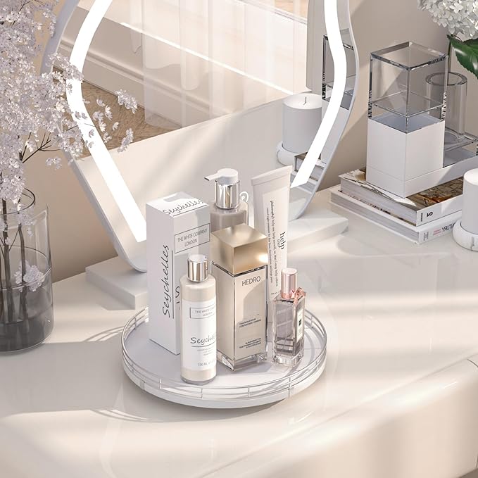 - ๐ง๐ต๐ผ๐๐ด๐ต๐๐ณ๐๐น ๐๐ฒ๐๐ถ๐ด๐ป: The turntable tray features a smooth and silent 360ยฐrotation; Bottom slip-resistant pads for stability and protect your countertop from scratches; Raised edges on each organizer tray to keep items from falling out; Easy to use, no installation required