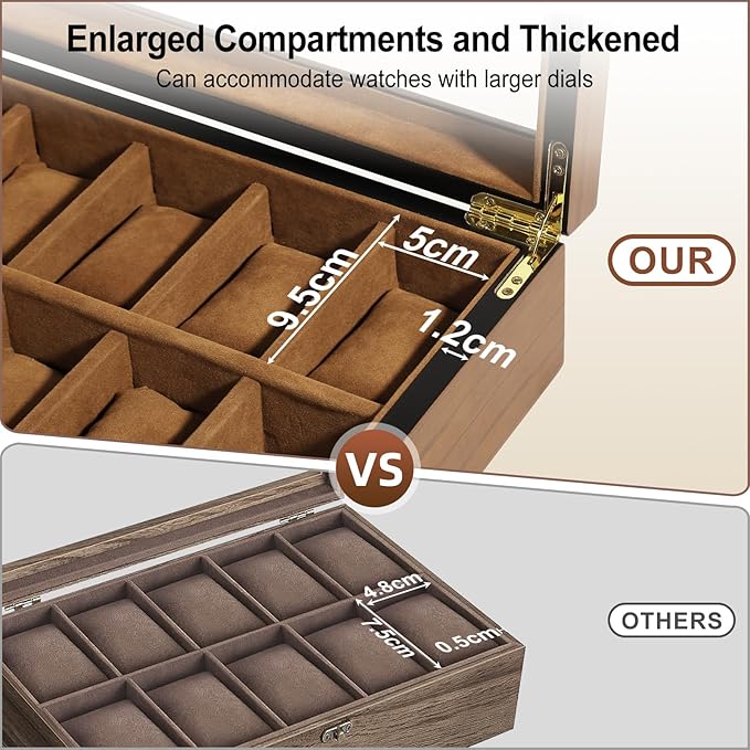 - 【Wide Application】This watch jewellery box evokes a sense of class and charm, perfect for private storage and commercial display, keeping your valuable timepieces from dust. It is a great gift for any celebration or festival like graduation, Christmas, birthday, promotion, vacation, retirement, etc.