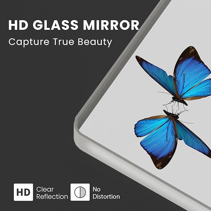 - Shatterproof Tempered Glass: The wall-mounted bathroom mirror features 17MM tempered glass with shatterproof film, which is shatter-proof, burst-proof, and ensures your safety even in case of breakage