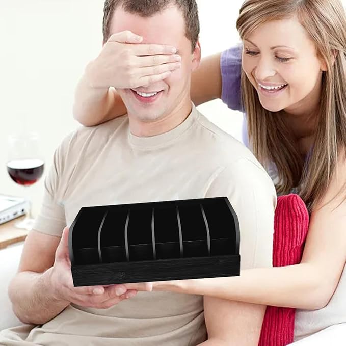 GTI Belt Organizer, 6 Compartments Belt Organizer for Closet and Drawer, Bamboo Display Case for Tie and Belt, Belt Storage Organizer for Men Women (Black)