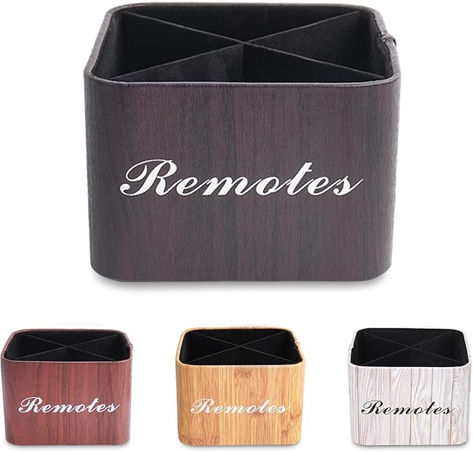 Hennaja Square Leather Art Supply Organizer,Remote Control Holder with Removable Dividers,360°Rotatable Pencil Holders,4 Compartments Organizer for Office Supplies Storage Box(1-Dark Brown)