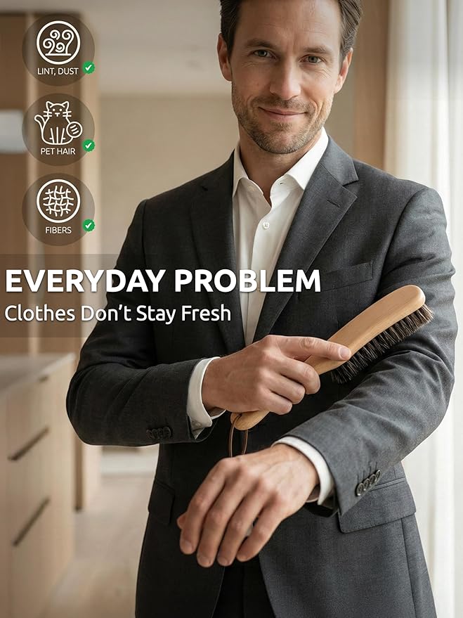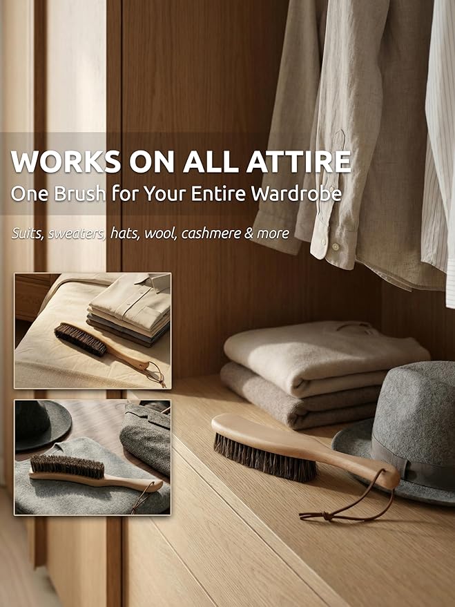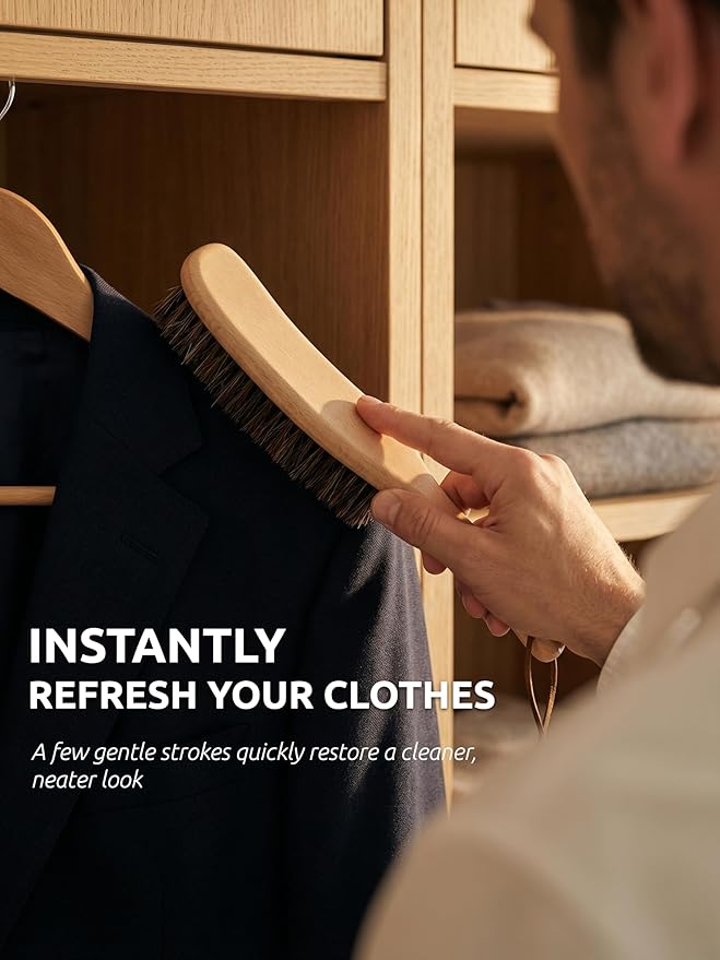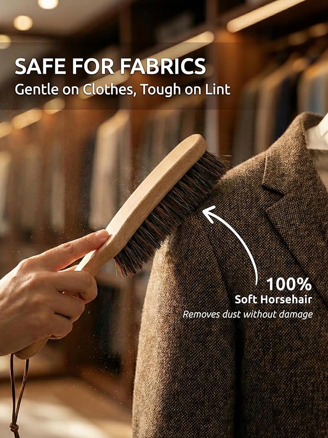 Lint Brush for Clothes with 100% Soft Horse Hair Bristle, Large Beech Wood Handle, Lint Remover for Hat, Pet Hair, Suits, Cashmere, Wool, Velvet, Suede, Shoe