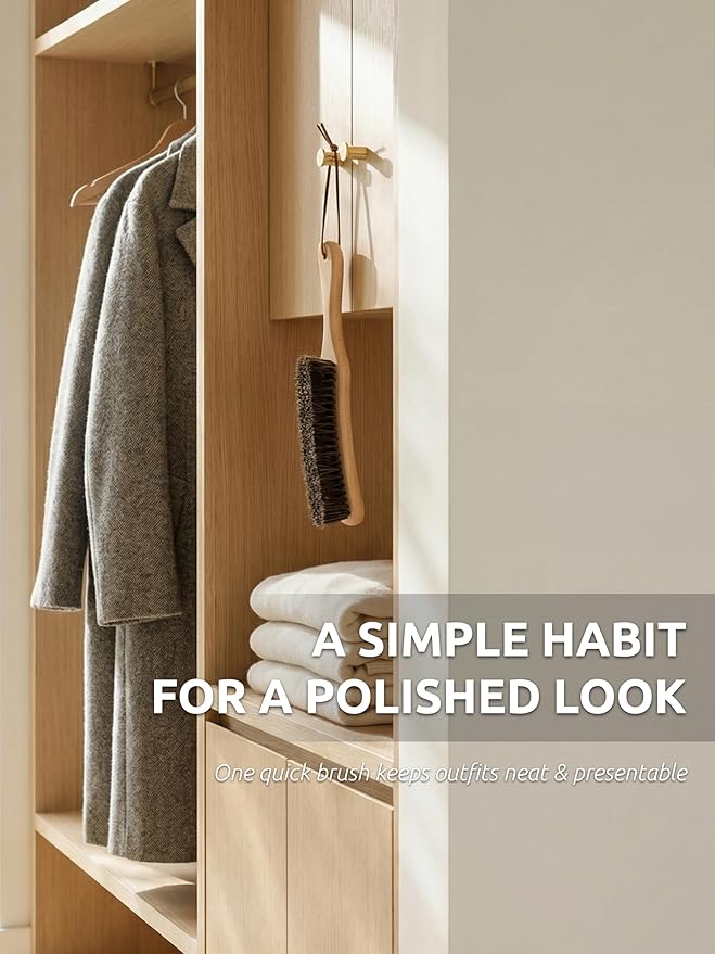 - Ergonomic Easy Grip Handle: With dimensions of 10.6 x 1.4 inches and a solid beech wooden undercarriage, this hat-clothes brush offers a comfortable and durable grip. The wooden layer has been finely sanded and polished to ensure both user safety and aesthetic appeal. Despite its compact size, this simple brush consistently keeps your clothes in a clean state.