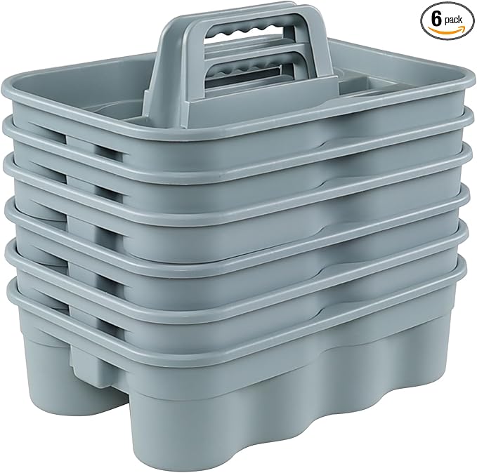 6-Pack Plastic Cleaning Storage Caddy, Cleaning Supply Carry Caddy, Gray