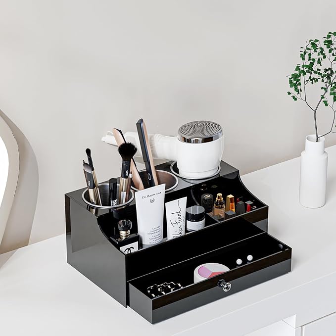 - CONVENIENT DRAWER INCLUDED - Unleash the magic of our hair product organizer 's silky smooth drawer, which offering an irresistibly smooth push and pull. Store all your treasures effortlessly, from hair clips to accessories.
