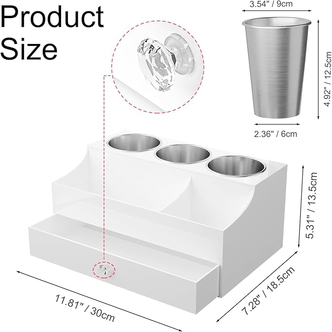 - SAVE SPACE, SAVE TIME, STAY ORGANIZED - Our hair organizer storage is also the solution for small counter-tops. Its space-efficient design provides ample storage, while the removable stainless steel cups and washable storage box ensure hassle-free cleaning.