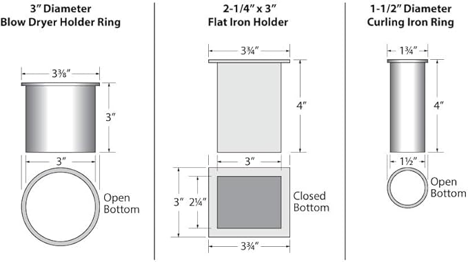 - Organized Styling Essentials: Keep your salon space clutter-free with our premium appliance holder package, featuring a 3" diameter stainless steel blow dryer holder, a 1-1/2" diameter curling iron ring, and a brushed stainless steel flat iron holder. Everything you need in one convenient set.