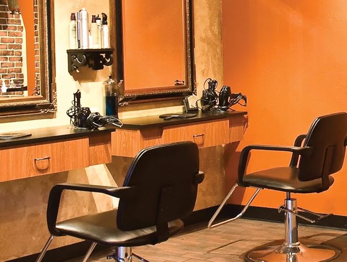 - Efficient Design: The 3" diameter blow dryer holder, 1-1/2" diameter curling iron ring, and 2-1/4" x 2-3/4" flat iron holder are thoughtfully designed to accommodate various styling tools. They provide a snug fit, preventing tools from sliding or tipping over, ensuring easy access during busy salon hours.