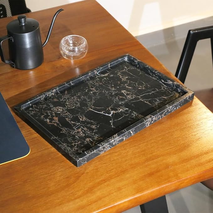 - 【MULTIPLE PURPOSE –ELEGANT DECORATION】Using the marble tray for the kitchen, bedroom, vanity countertop, bathroom, linen closet, and bedside table to keep your daily life more convenient and elegant.