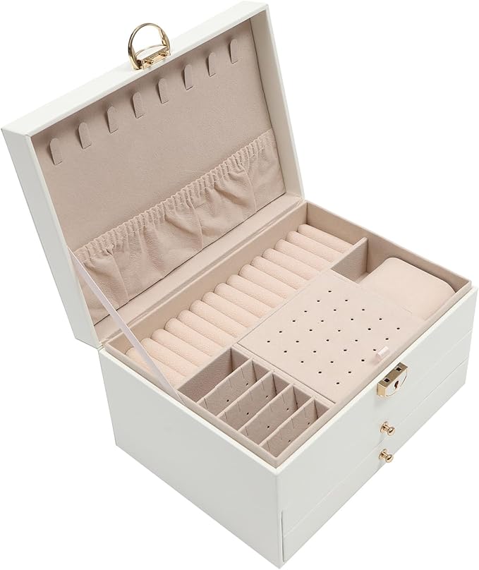 - Large Storage Space: Designed with three tiers of multiple compartments, 8 built-in hooks, and a storage bag, this watch box offers plenty of space for sorted storage to suit most watches and jewelry on the market to simplify your lifestyle.