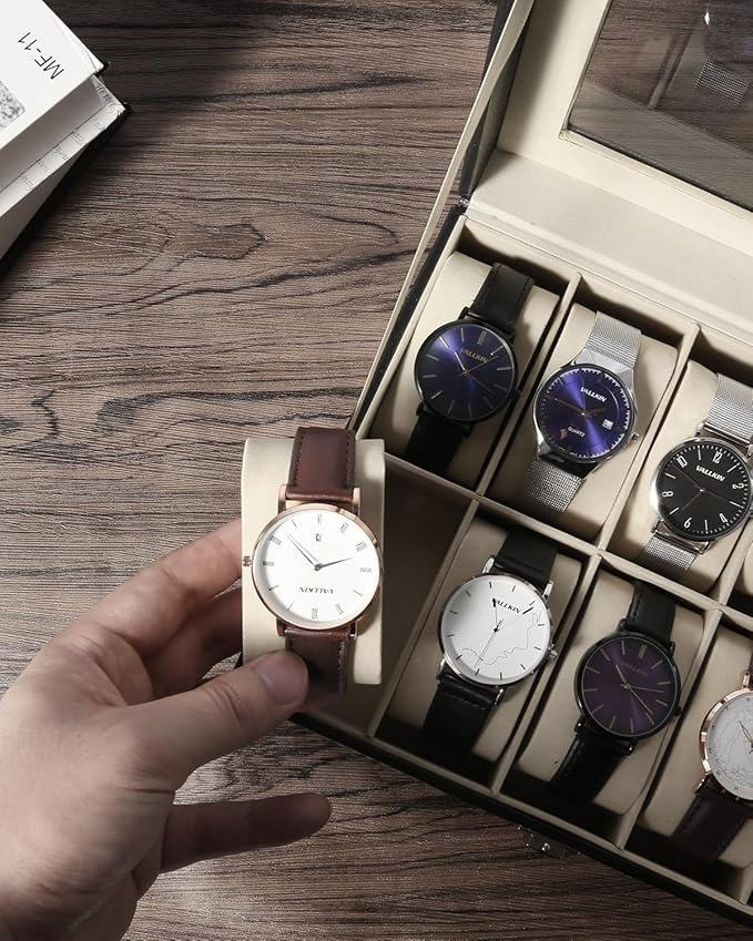 - 【Wide Use】 This watch storage box is perfect for men, women use and watch shop use. A great gift for any celebration or festival like graduation, Halloween, Thanksgiving, Christmas, birthday, vacation, retirement, Weddings, etc.