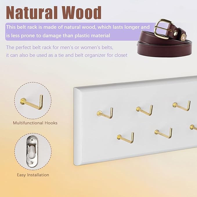 - BELT DISPLAY RACK GRRAGT CHOICE FOR MEN AND WOMEN: This unique wooden belt rack is a thoughtful choice for men and women, perfect for cloakroom, bedroom or door wall. You can attach the belt rack to the doorway, and hooks on the rack can hold keys, necklaces, umbrellas and other items. Plus, this belt organizer would make a great birthday or Christmas choice for a husband, father or boyfriend.