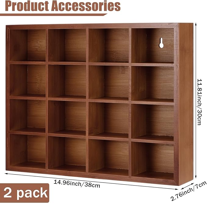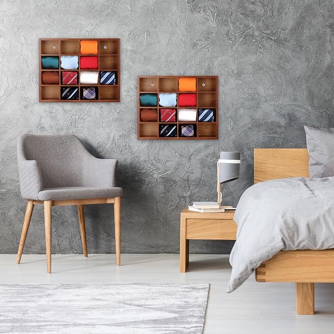 Wesiti Tie Box Organizer Wall Mounted Tie Rack with 16 Compartments Bamboo Belt Holder for Men Scarf Necktie Home Wall Closet(Dark Brown Color,2 Piece)