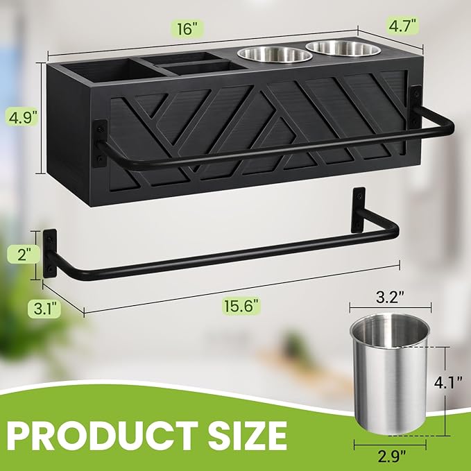 - 【Space-Saving & High-Quality】With it's compact size and reasonable structure, this white bathroom hair dryer organizer with 2 towel bars is perfect for bathrooms with limited space. The hot iron holder helps maximize storage capacity while keeping your essentials within easy reach. This wood curling iron holder wall mount for bathroom decor is made of solid wood, 2 stainless steel cups and 2 towel bars, which is sturdy enough to keep up with your daily grooming and busy lifestyle