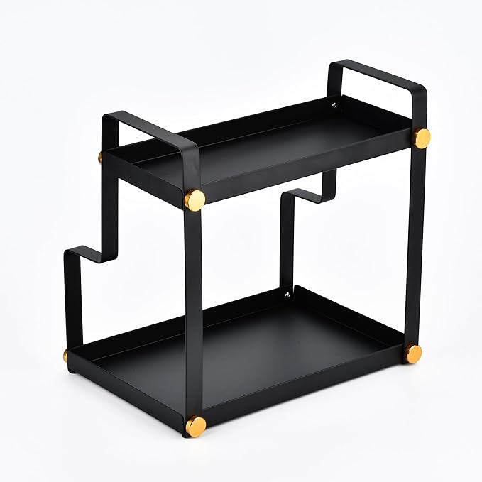 FFK 2 Tier Countertop Organizer, Cosmetic Organizer, Storage Shelf for Cabinet, Countertop, Pantry, Desktop, Ideal for Bathroom, Kitchen, Office (Black)