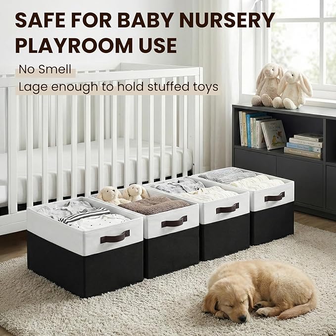 - 【STYLISH & DECORATIVE】 Designed with two tones, adorned with 2 brown handles, Not only serve as fabric storage bins, but a statement piece that reflects your discerning taste and pursuit of quality life. Bring a sense of order and refinement and a touch of warmth to your living room, bedroom, bathroom, office, nursery room, laundry room and more.