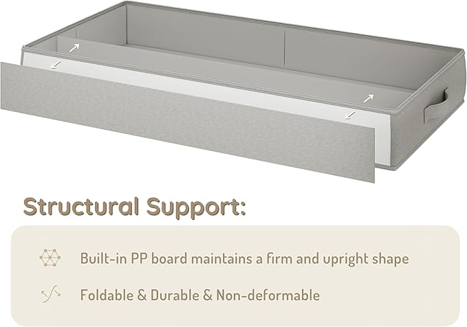 - 【Premium Fabric】Our underbed storage containers are crafted from two-ply thickened linen fabric that's odorless, eco-friendly, and durable. This high-quality material effectively keeps the interior dry and breathable, preventing clothes and bedding from dampness and mildew—keeping your items fresh and clean year-round