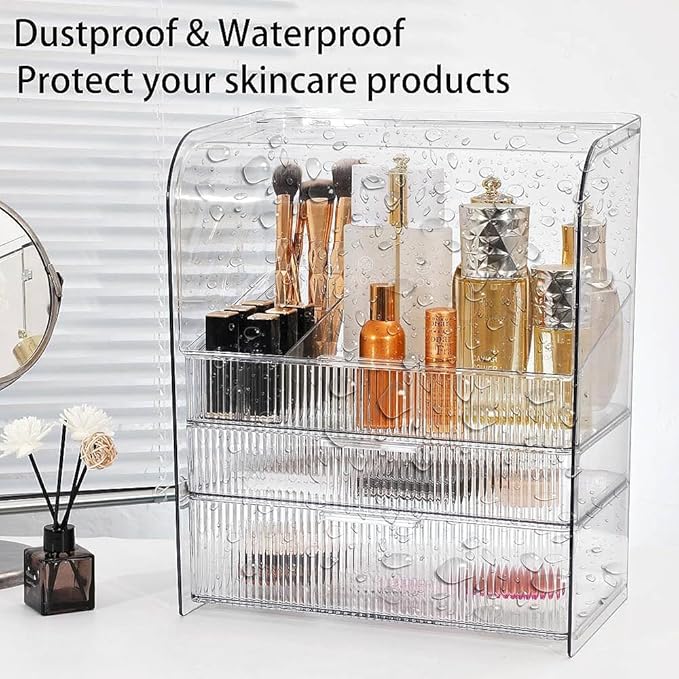 Makeup Storage Organizer Box Large Cosmetic Display Cases Dustproof and Waterproof Cosmetic Organizer Countertop Skincare Organizer