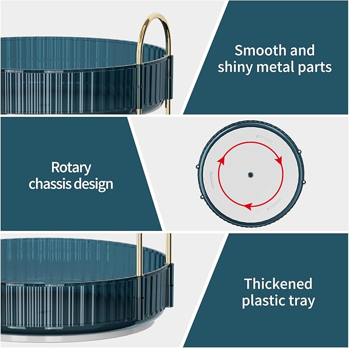 - 👒360 Rotating Design: This rotating makeup organizer is different from other makeup organizers, it can easily rotate 360 degrees, and its rotating base and high tray edge prevent spills, it not only helps you organize your cluttered desktop space but also easily rotate to choose what you want Items.