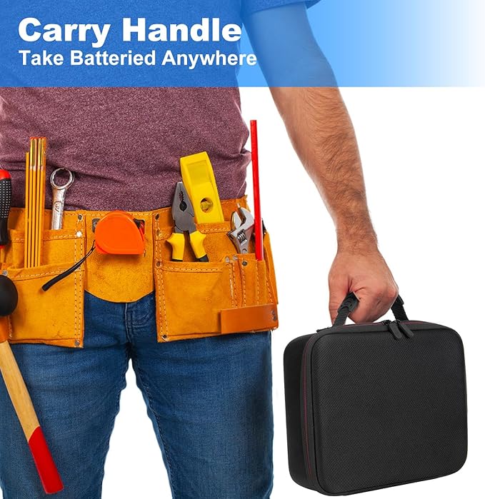 - 【Portable Battery Case Bag】Equipped with a sturdy handle, facilitating easy transportation of the battery box for on-the-go power access, whether at home, work, or during travel. More conveniently, it saves more volume and is more portable than plastic battery boxes.