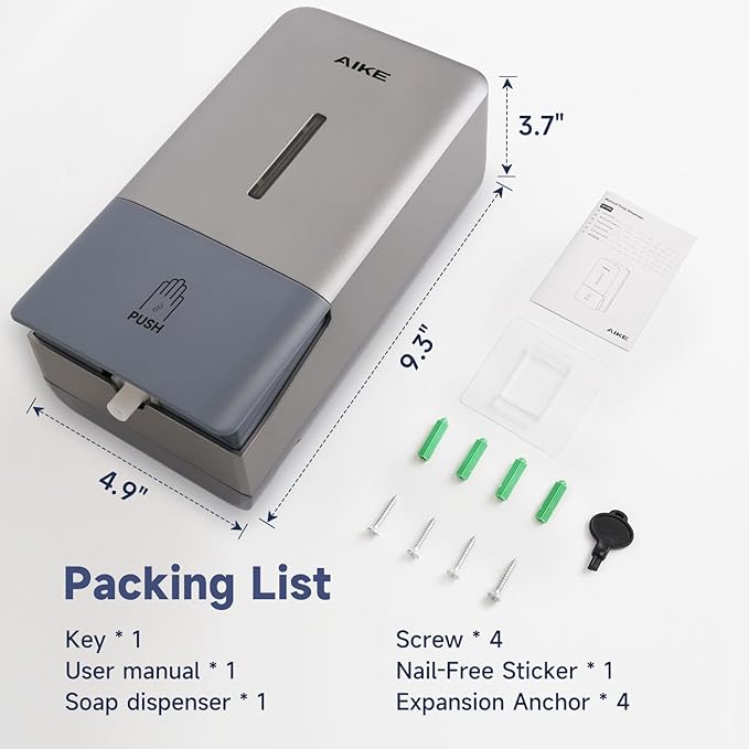 - Product Highlights: Effortlessly dispense with an oversized push panel, featuring a safety lock to prevent unauthorized opening