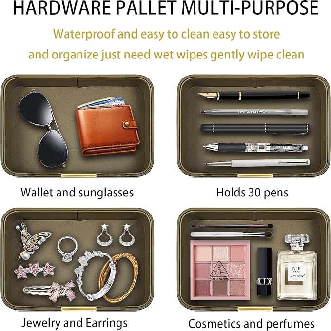 - Widely Used - This leather tray with metal is suitable for use in a variety of settings, from homes to offices. It can be used to store keys and other small items in an entryway or to keep jewelry organized on a dresser,this one could be used to store small office supplies like pens, paperclips,notebooks, remote controls, mobile phones, school glue sticks, marker, note paper, business cards, stapler, scissors and so on,Small trays are also perfect as gifts and you can buy with confidence!