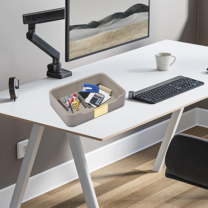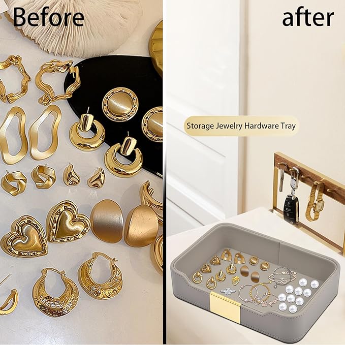 - Widely Used - This leather tray with metal is suitable for use in a variety of settings, from homes to offices. It can be used to store keys and other small items in an entryway or to keep jewelry organized on a dresser,this one could be used to store small office supplies like pens, paperclips,notebooks, remote controls, mobile phones, school glue sticks, marker, note paper, business cards, stapler, scissors and so on,Small trays are also perfect as gifts and you can buy with confidence!